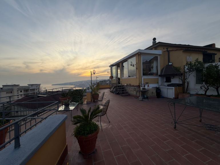 Attico super panoramico con terrazzo a livello – Via Suor Orsola. Nel tratto più riservato ed elegante di Via Suor Orsola, adiacente alla funicolare del Corso Vittorio Emanuele e di fronte allo storico Istituto Pontano, proponiamo in vendita attico di grande fascino, unico nel suo genere: circa 160 mq interni, oltre 250 mq di terrazzo a livello, vero protagonista dell’immobile, vista panoramica mozzafiato sulla città, possibilità posto auto. Gli ambienti interni, ampi e luminosi, si aprono naturalmente verso l’esterno, creando una continuità rara tra casa e terrazzo, ideale per vivere, ricevere e godere appieno della luce e del panorama in ogni stagione. Il terrazzo, straordinariamente esteso e fruibile, rappresenta uno spazio esclusivo per momenti di relax, convivialità e privacy, nel cuore della città ma lontano dal caos. Posizione strategica e di assoluto pregio, ben collegata, centrale ma riservata. Soluzione riservata – informazioni in ufficio
